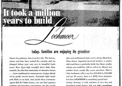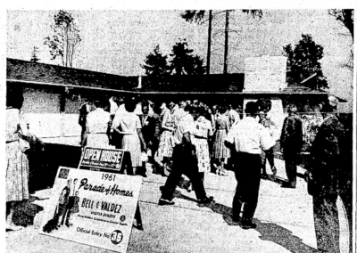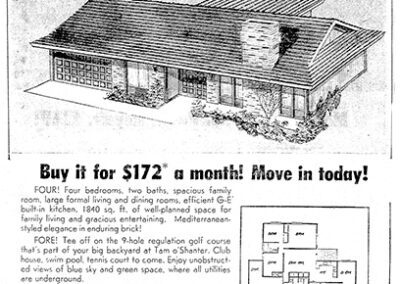 Innovation in sales was important. Often their homes had unfinished space so a house could grow with the buyer. Marketed as their “Stop & Grow – Finish-it-Yourself,” the program sparked a 40% boost in sales. Promotion was also high priority to the team. They were heavily involved in the annual Parade of Homes shows during the late 1950s and 1960s. As their success grew, reportedly, weekend sales at some of their developments were so high that they had to hire traffic police to direct automobiles through their subdivisions.