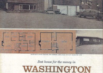 Bell’s legacy was the development of ranch, split-level, and split-entry homes that were initially marketed to newly married young couples, and returning G.I.’s. Over three decades, beginning in the late 1940s, Bell (first individually and then with partners) reportedly built over 15,000 houses; mostly single-family homes on the Eastside and in South King County. Over the course of his career he also became one of the best-known and most respected leaders in the building and development industry in the nation. He was a visionary and was particularly successful and respected by his peers due in large part to partnerships with many of his subcontractors, which gave them the opportunity to benefit from his success as well.