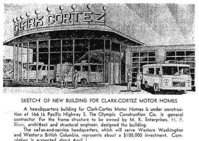 In 1956 he formed a partnership with Douglas L. Cuyendall and Marvin S. Iles. Together the Cuykendall, Iles & Blean firm designed a variety of buildings across Puget Sound. Notable projects include an educational wing for the Seaview Methodist Church (1958) in Seattle; a J.C. Penney Department Store (1958) in Kent; Missile Maintenance Buildings (1959) in Poulsbo; the Boeing Engine Test Facility (1959) in Seattle; King’s Garden Rehabilitation (1959); KGDN Radio Station (1959); J.E. Hall House on Lake Sammamish (1960); the Jay Jacobs Store (1961, with Victor Gruen Associates); the Chief Sealth High School Stadium (1962) in Seattle; and the H.D. Fowler Co. Office and Warehouse (1963) in Bellevue.