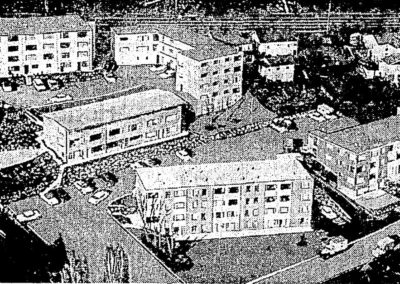 With valuable experience at hand, Bolotin opened his own firm in 1955 and specialized in apartment buildings and clinics. His straightforward, no-nonsense designs for developers brought him an endless number of clients throughout the late 1950s and 1960s. Notable projects include the Blue Spruce Apartments (1956); Price Manor Apartments (1958); the Rochdale House Apartments (1960) the Edgewater Apartment complex (1960); Harborview Tower (1960), and the Panorama House Apartments (1961), all in Seattle. He also designed the Chalet (1968) at Panorama Retirement home in Lacey. His firm also developed the plans for the Sans Souci Condominiums (1975) in Tacoma for the then newly formed Quadrant Corporation. Bolotin’s known clinic designs include the Bridge Clinic & Professional Offices (1956), and the Peizer Medical-Dental Clinic (1958) both in Seattle.