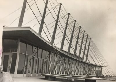 In May of 1943, Burkhard moved to Seattle where he served as a mechanical engineer for the Boeing C-97 Stratofreighter project. After the war, he established his own architectural practice and began to push the architectural envelope with his innovative designs. Quickly his work began to receive several awards and accolades. In 1945, he was one of two cash prize winners for a General Motors Architectural Design Competition for an automobile dealership. Then in 1951, he received a Seattle AIA Honor Award for Southgate Elementary School, which was followed up two years later by a National Honor Award for his design of Foster Junior-Senior High School (1951) in Seattle. Burkhard also received local AIA awards for Clark’s Cleaners (1955) and the Health & Physical Education Building/ Nicholson Pavilion (1959) at Central Washington University in Ellensburg.