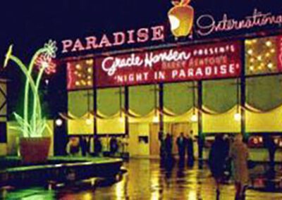 Other notable work included Grace Hansen’s Paradise International Club, a Las Vegas style burlesque nightclub at Century 21 (1962); Orcas Island Real Estate Office in East Sound (1961); Dr. Briggs-Hall Veterinary Clinic (1971); Crown Hill Veterinary Hospital (1972); the Cedar River Animal Hospital (1973) in Renton; the 2nd & Union Parking Garage (1969); the Jade Pagoda Restaurant (1967); and Ming Palace Restaurant (1979) in Bellevue.