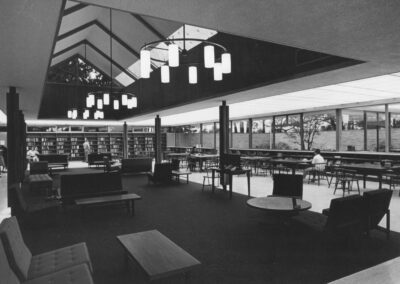 It was Garrison’s design for the Tenzler Memorial Library (1963) in Lakewood that brought him much acclaim. The project received a first place honor award in the 1964 National AIA Library Building award program sponsored by the AIA, the American Library Association and the National Book Committee.