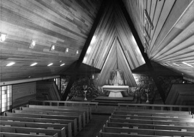 In the late 1950s, Gotteland took on an additional partner, Roy Koczarski. Together, Gotteland & Koczarski designed many notable projects including the Harvard Ave Apartments (1958) which were featured in Architectural Record. They also produced a large number of work for the Seattle Archdiocese including Sisters of Visitation Retreat House for Women (1957) in Federal Way, St. Luke’s Church & School (1957) in Shoreline which was featured in advertisement for Pittsburgh Spandrel Plate Glass, Seattle’s Our Lady of the Lake Church (1961), St. Bernadette Church in Seattle (1961), Sacred Heart Church in Morton (1962), St. Joseph Church in Lynden (1963), Egan Hall at St. John Church (1963) in Seattle; J.F. Kennedy High School (1966), St. John Bosco Church in Tacoma (1970), and St. Madeleine Sophie Church in Bellevue (1970, featured in Progressive Architecture Mag).