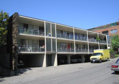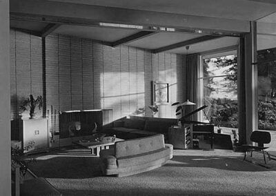 Gotteland gained valuable experience while working in the architectural offices of Thiry & Shay from 1936 to 1940. During the war years, he was employed by private contractors who provided architectural work to the US Navy. His earliest known work in Seattle is the International style Savinoff Furniture Studio (1946) at 217 9th Ave in Seattle. Perhaps his best known work however, is the Dr. John Lehmann House (1951) which was featured in numerous publications including the book, Practical Houses for Contemporary Living (1953). Other known projects by Gotteland & Associates include the Palisades Retreat Center (1956) in Federal Way, and the Seamen’s Club (1957) in Seattle.