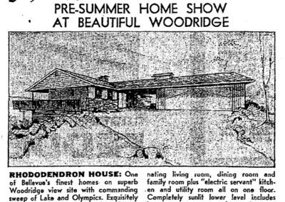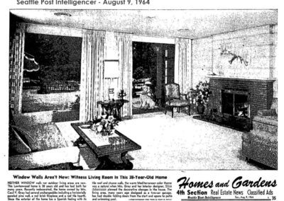 Despite no formal training, by 1959 dwellings across Seattle were being advertised as having been decorated by nationally acclaimed interior designer Mrs. William “Stina” Johannesen. Known projects include twelve model homes in Laurelhurst Park for developer Gordon Johnson (1960); the Jess Klinker House (1963) in Broadmoor; the Cecil Gray House (1964); a home at 138 N 130th St (1950); and the Douglas Schindele House (1956).