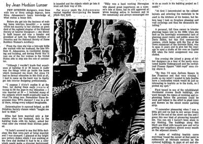 Johannesen was a frequent lecturer, offering her thoughts on good design to numerous organizations. She was a featured speaker at the Pacific Northwest Home Builders Convention (1956), and lectured numerous times at the Business Management Conference for the Home Builders’ Association of Greater Seattle (1960, 1961).