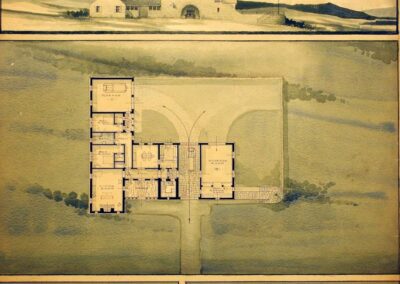During the early war years, he served as the head drafting room architect for the Pacific Naval Air Bases in Pearl Harbor (1940-1942). Then in 1942 he became the in-house architect for the Utah-Pomeroy-Morrison Companies Geneva Steel Plant in Utah. Rising to the title of Assistant Construction Engineer, Lovegren supervised a staff of 85 and completed plans for numerous industrial plants, administration buildings, hospitals, shops and railroads (1942-1944).
