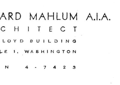 In the mid 1960s, Mahlum’s sons joined the firm, now renamed Mahlum & Mahlum. Then in the late 1970s, they took on another partner, John Norfors. Today, the firm is known as Mahlum Architects, and currently has offices in Seattle and Portland. Edward K. Mahlum passed away in Seattle on September 5, 1998.