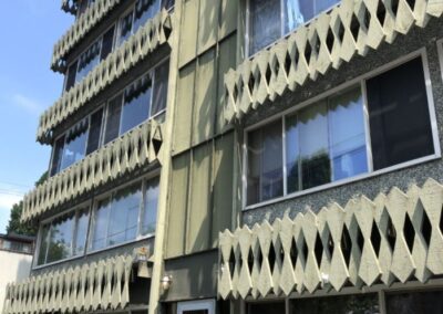 Many of the firm’s projects were commissioned by Seattle real estate developer Don Kennedy and builder Kemp Hiatt (also known as H & K Construction). Projects for them include the Belmont Roy Apartments (1956), the Brooklyn Apartments (1960), the Hiatt Apartments (1960), the CoHo Apartments (1964), and the Tyee Apartments (1963).