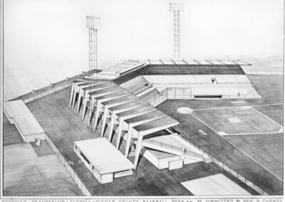 Mills’ design for Tacoma’s Cheney Stadium (1960) brought him much acclaim. His design for Elks Lodge No. 174 (1965) in Tacoma, was one of his largest projects. The building housed a lodge room which can seat 1,000, a dining room, and lounge with dance floor, billiards and pool tables, bocce courts, an indoor swimming pool, handball/racquetball courts, an exercise room, and a softball field.