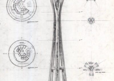 Steinbrueck is perhaps best known for completing the original concept for the Space Needle and designed the Exhibition Pavilion for the 1962 Seattle World’s Fair. A true Renaissance man, Steinbrueck was also an accomplished artist and his works are part of the collections of many galleries around the Pacific Northwest. Also an author, his influential book, A Guide to Seattle Architecture, 1850–1953, prepared for the National Convention of the American Institute of Architects in June 1953, is regarded as the first publication on Seattle architecture.