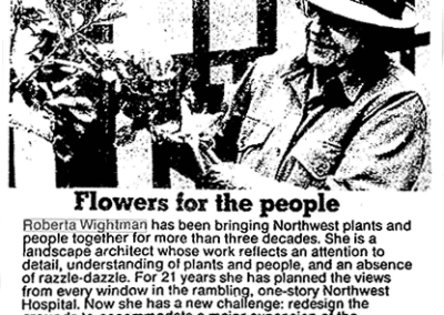 Among her most treasured projects was a longtime partnership with Northwest Hospital in Seattle. Wightman served as their landscape architect for over 30 years, and designed the landscaping for the original construction in 1959-1960 and a later expansion in 1980.