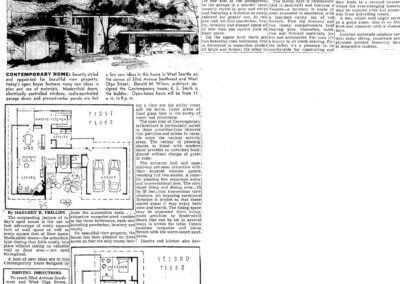 His talents as a designer were recognized early on. In August of 1947 one of his designs was featured in the Seattle Times featured series, “A Puget Sound Home.” By the 1950s he had become a favorite by many builders and he was chosen to design their featured homes at their annual home show. The 1951 model house dubbed the “Northwesterner” was a contemporary one-story dwelling featured an unusual triangular-shaped fireplace, while the 1953 home (the “Town and Country” ), was a split level with flying wing style roof plate.