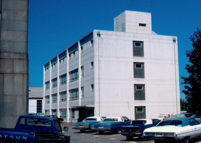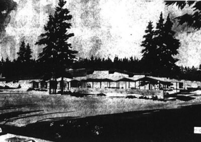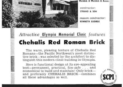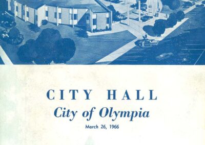 Other notable projects include a variety of federal buildings and schools, the State Theater (1949), St. Michael’s Catholic Church (1966), several homes in the Stratford Place Addition in Olympia, and Memorial Hospital (1948). His most noteworthy design however is Olympia City Hall (1966). The round donut shaped building received wide publicity at the time of construction. Its central core, the round council chambers, was originally surrounded by a fish-filled moat.