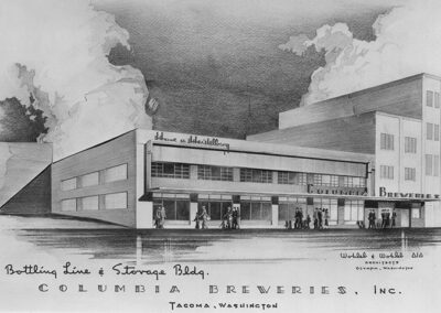 Struggling to rise above the shadows of his more famous father, Robert Wohleb found his niche by specializing in the design of breweries. His brewery projects, numbering in the dozens, can be found scattered throughout the United States. Among his Pacific Northwest designs are Columbia Brewery/Heidelberg Brewing Co. in Tacoma (1954) and several buildings at Olympia Brewery in Tumwater.