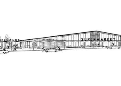 In 1959, Woo formed a partnership with Seth Jackson and Donald M. Edwards. Known as Woo, Jackson & Edwards (1959-1963) the firm specialized in shopping centers. Projects include the Town & Country Shopping Center (1959) in Bellingham, Issaquah Center Shopping Center (1961), B & V Village Shopping Center (1962) in Redmond, Fuller’s Market Basket (1963) in Chehalis, and the Sunset Plaza Center (1963) at Factoria.