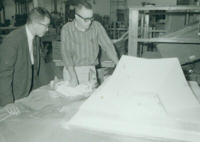 In 1969, Gerald A. Park joined Woo in a new partnership. Together they designed a variety of projects scattered across the Seattle region including the King County Fairgrounds (1970) in Enumclaw, several improvements to Seattle Community College (1969-1970), the Kawabe Memorial House Senior Apartments (1971), the United Savings & Loan Bank Headquarters building (1973) in Seattle’s Chinatown/International District, the United Savings & Loan Association – Jackson Park Branch (1975), and completed an extensive remodel of the Renton Highlands Shopping Center (1979).