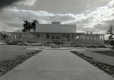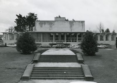 Designed by prominent Northwest architect Paul Thiry during the height of his career, the Washington State Library Building (aka Joel M. Pritchard Building), located on the State Capitol Campus south of the Legislative Building, was the last monumental building to be added to the campus. The Washington State Library Historic Structures Report, prepared for the Department of General Administration (GA) in October 2002, cited the Library Building as “…among the most important regional archetypes of mid-century architectural design and thought. The social history surrounding the Library and the prominence of designer Paul Thiry during the period anchor the building and its history firmly in the Pacific Northwest post-war development. By adding the layers of significance that come with associations to political and artistic figures, the Washington State Library becomes a textbook on how Washingtonians looked at the future in the 1950s and how public buildings reflected that vision.”